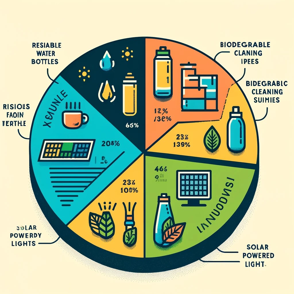 You are a market analyst at an eco-friendly products company. You've compiled the annual sales data for four major product categories: Reusable Water Bottles, Biodegradable Cleaning Supplies, Solar-Powered Lights, and Eco-Friendly Packaging Materials. Your task is to present this data in a way that highlights the company's sales diversity and product popularity.